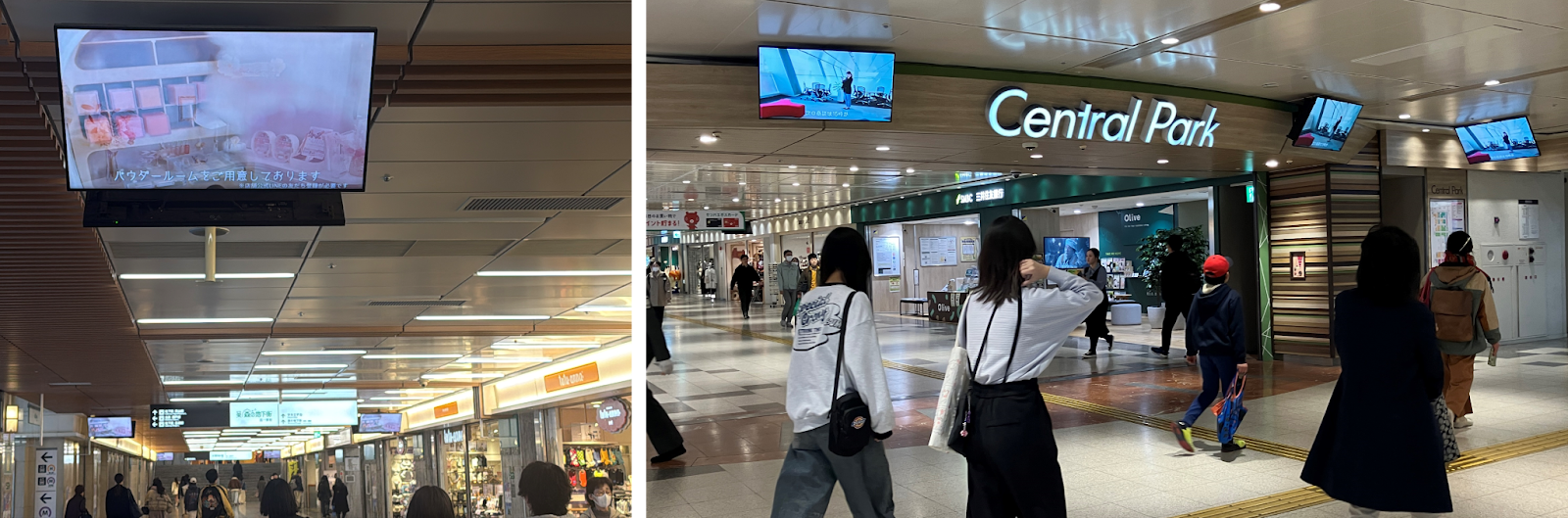 今回のサイネージの出稿目的は、地元アイドルとのコラボ期間中の来店促進と「d garden名古屋栄店」が課題としていたパウダールームの宣伝でした。